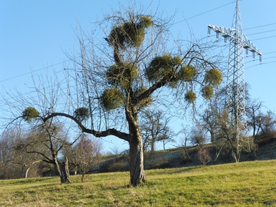 Foto (Bildquelle: Landkreis Göppingen): Misteln entziehen Obstbäumen Wasser und Nährstoffe und sollten frühzeitig entfernt werden