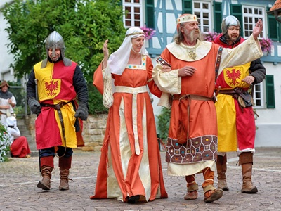 Mittelalterliches Markttreiben mit Musikdarbietung und Zauberei, Darstellern von Alltagsszenen und Schwertkämpfen, altertümlicher Spielestraße, Riesenseifenblasen und einem Erzähltheater für Kinder.