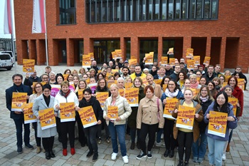 HaiPressDie Eislinger Rathausverwaltung versammelte sich auf dem Schlossplatz vor dem Rathaus,um ein starkes Statement für das Entgegenwirken von Gewalt an Frauen zu setzen. Oberbürgermeister Klaus Heininger hat die Beschäftigten der Verwaltung aufgerufen und gebeten,Solidarität zu bekunden und sich bei der Kampagne zu beteiligen.