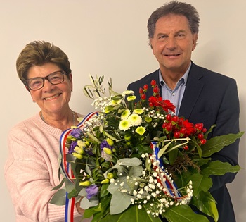 Die deutsch-französische Städtepartnerschaft mit Oyonnax wurde im Dezember 2001 gegründet. Bereits kurze Zeit später wurde zum Aufbau der deutsch- französischen Freundschaft das Partnerschaftskomitee ins Leben gerufen. Karin Schuster übernahm den Vorsitz und engagiert sich nun seit über zwei Jahrzehnten für die Festigung und für den Ausbau der deutsch -französischen Freundschaft. Zahlreiche Begegnungen der unterschiedlichsten Art,an denen Karin Schuster mitgewirkt hat,haben dazu beigetragen,dass sich aus der Jumelage eine herzliche Freundschaft entwickelt hat. Großen Anteil hatten daran gegenseitige Besuche aus der Bürgerschaft,um Land und Leute kennenzulernen,unterschiedlichste Vereinsbegegnungen,Schüleraustausche,Fußballturniere,Kunstausstellungen,Konzerte,Jubiläumsfeiern,Stadtfeste und vieles mehr. Aus all diesen gegenseitigen Besuchen sind freundschaftliche Bande entstanden. Die herzliche Verbundenheit wird von beiden Stadtoberhäuptern und insbesondere auf bürgerschaftlicher Ebenen intensiv gelebt und gepflegt. Höhepunkte des langjährigen Engagements von Karin Schuster waren zweifellos die Jubiläumsfeier zum 20. Geburtstag der Städtepartnerschaft und die feierliche Übergabe der Schlüssel der Stadt Oyonnax im Juli dieses Jahres,an der das Wirken der langjährigen Vorsitzenden großen Anteil hatte. In all den Jahren verstand sie sich nicht nur als Motor und Organisatorin,sondern auch als engagierte Netzwerkerin und herzliche Gastgeberin. Oberbürgermeister Klaus Heininger würdigte ihr Engagement und bedankte sich ganz herzlich mit einem Strauß aus Blumen und Bändern in den französischen Landesfarben „Als Mutter unserer Städtepartnerschaft mit Oyonnax haben Sie sich unermüdlich für die deutsch-französische Freundschaft eingesetzt – immer charmant,aber auch mal mit Nachdruck. Ohne Sie,würde es die Partnerschaft in dieser Art nicht geben.“ Er erinnerte daran,dass Karin Schuster bereits in ihrer beruflichen Laufbahn an der