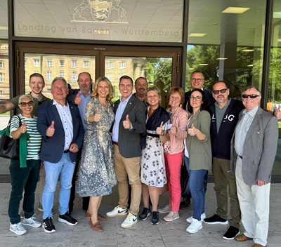 Nach einer Führung durch den Besucherdienst des Landtags stand für die Gruppe ein gemeinsames Mittagessen mit der Abgeordneten im Landtagsrestaurant Plenum auf dem Programm,an welchem auch ein Vertreter des österreichischen Honorarkonsulats in Stuttgart teilnahm. Dabei unterstrich Sarah Schweizer,die dem Europaausschuss des Landtags angehört,die Bedeutung der seit dem Jahr 1971 bestehenden Städtepartnerschaft: „Die Partnerschaft zwischen Göppingen und Klosterneuburg ist für mich ein Musterbeispiel für ein gelebtes Europa. Aus den gegenseitigen Besuchen sind im Lauf der Jahrzehnte viele Freundschaften entstanden. Besonders freut es mich,dass ich meinem Landtagskollegen Christoph Kaufmann und unseren österreichischen Gästen diesmal auch einen Einblick in die parlamentarische Arbeit bei uns in Baden-Württemberg geben konnte.“