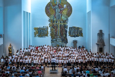 Das ganze Schuljahr über haben sie mit ihren Lehrkräften diese für die meisten doch ungewohnte Musik geprobt. Unterstützung kam dabei von Stimmbildnerinnen und Stimmbildnern der Internationalen Bachakademie Stuttgart. Mit diesem Konzert feiert nämlich die Bachakademie das zehnjährige Jubiläum ihres Musikvermittlungsangebots „BachBewegt! Singen!“. Und jetzt ist es so weit. Mit tosendem Applaus begrüßt das Publikum in der ausverkauften Domkirche St. Eberhard die jungen Sängerinnen und Sänger,die ihre Sache ausgezeichnet machen.