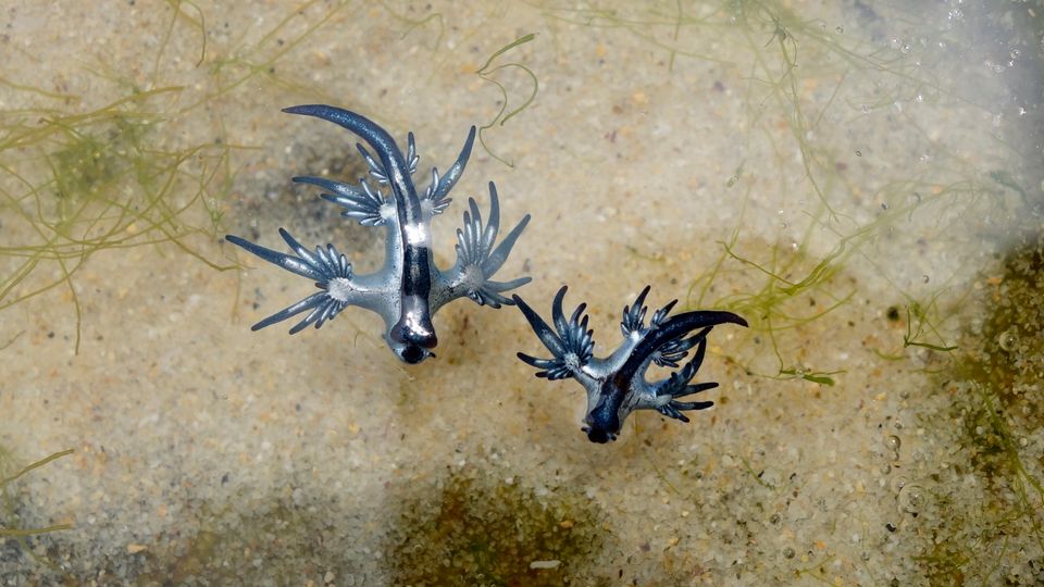 Leuchtend blau und silber schillert die Glaucus atlanticus. Wegen ihrer Farbe und Form wird die marine Nacktschnecke auch »Blauer Drache« genannt. Sie ist nicht nur wegen ihres Aussehens etwas Besonderes,sondern kann auch giftig sein.