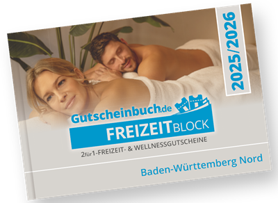 Der Gutscheinbuch.de Freizeitblock Baden-Württemberg Nord 2025/2026 bietet zahlreiche Angebote aus den beliebtesten Freizeitkategorien:
