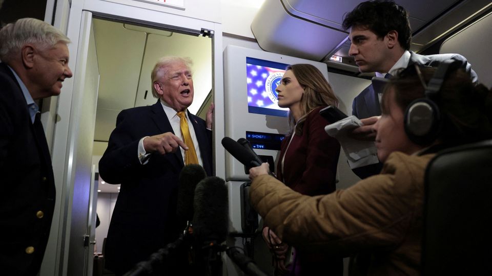 Donald Trump in der »Air Force One« am Sonntag