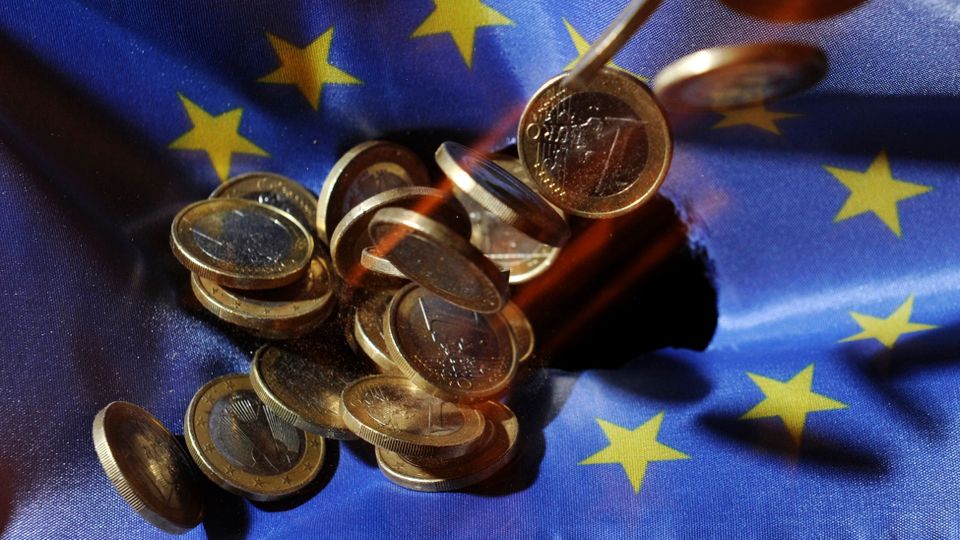 Europafahne mit Euromünzen