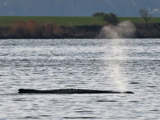 Am Freitagmorgen hatte das Tier mit heftigen Bewegungen auf einen sich nähernden Taucher reagiert. Es schlug mit der Schwanzflosse und drehte sich um beinahe 90 Grad,wie in Livestreams zu sehen war. Nach wenigen Minuten beruhigte sich der Wal und lag wieder still im Wasser.