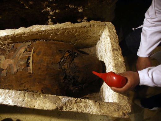 Archäologe inspiziert Mumien in einer Grabkammer in der Wüstenprovinz Minja (Symbolbild)